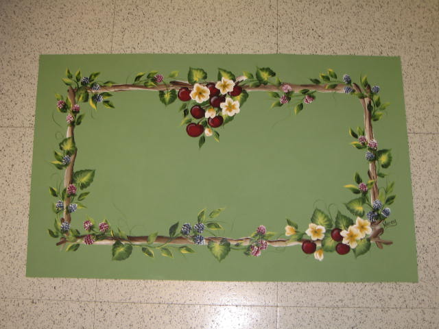 In this class you will learn how to paint cherries, black berries, raspberries, branches, leaves, flower blossoms, and curliques. This is an Intermediate/Advance level class – so you must have taken a few One Stroke classes.